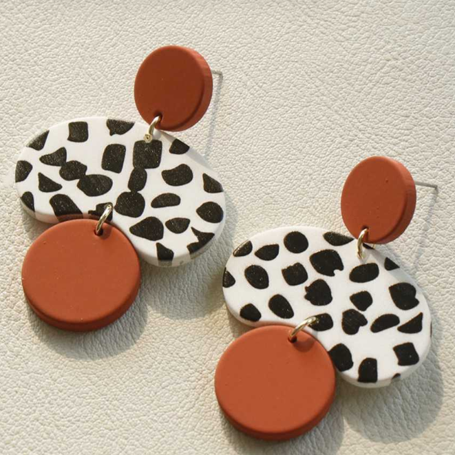 The Sahara earrings draw inspiration from sun-drenched desert landscapes and raw natural beauty. Featuring a striking contrast of warm terracotta tones and organic spotted patterns, these statement earrings embody the spirit of untamed elegance. Handcrafted from lightweight 100% polymer clay, Sahara balances sculptural form with everyday comfort, making them perfect for elevating both casual looks and bold evening ensembles. Each pair is uniquely detailed, celebrating imperfection as a mark of authentic craftsmanship.