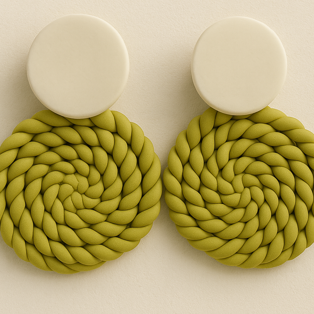 A modern ode to timeless craftsmanship, the Twistra earrings feature an elegant spiral braid meticulously handcrafted from 100% polymer clay. Their lightweight design ensures effortless all-day wear, while the intricate twists catch the light with subtle depth and texture. Perfect for adding a touch of refined artistry to any look.